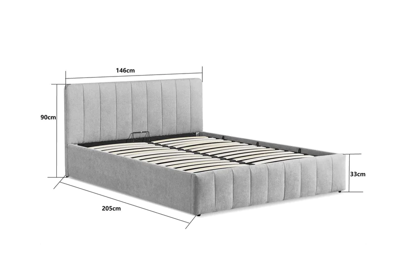 The Lydia Double Bed Storage in Grey, a fusion of modern style and functionality. Its sophisticated panelled design adds elegance to any bedroom, complemented by the convenience of under-bed storage, ensuring a clutter-free space. Wrapped in soft fabric upholstery, the Lydia offers both comfort and contemporary charm, making it an ideal choice for your bedroom sanctuary.