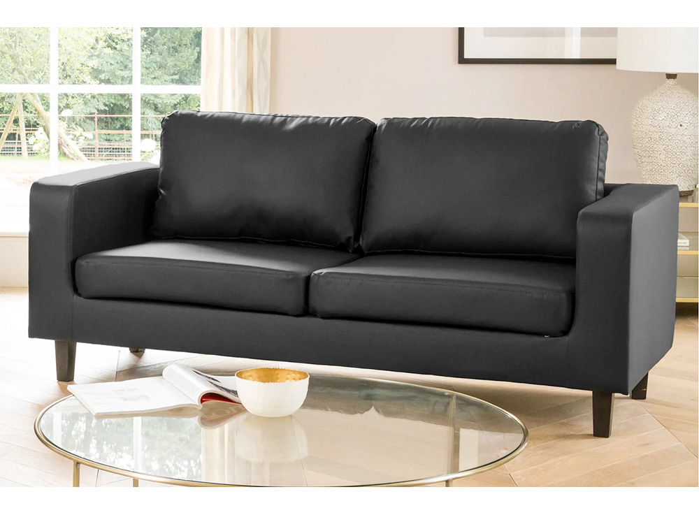 These sofas are also very practical – they look great but will cope happily with the most energetic of families. The cover is made from bonded leather – with some faux leather used on low stress areas – and manages to combine an attractive leather-look finish with a high degree of practicality, being very easy to clean and resistant to scuffs, fluids and stains. The cushions are all fixed and all fillings are fully fire retardant and meet or exceed UK safety regulations.
